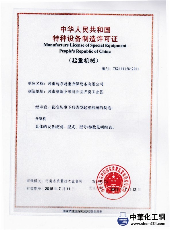 河南省目前為止唯一一家升降機取證企業。(許可證查詢網址:***.cnisn.com.cn/xukezheng)