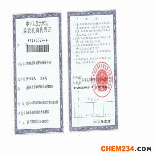 | 發(fā)證機(jī)構(gòu) | 永嘉縣監(jiān)督局 | 發(fā)證時(shí)間 | 2011-04-20 |
