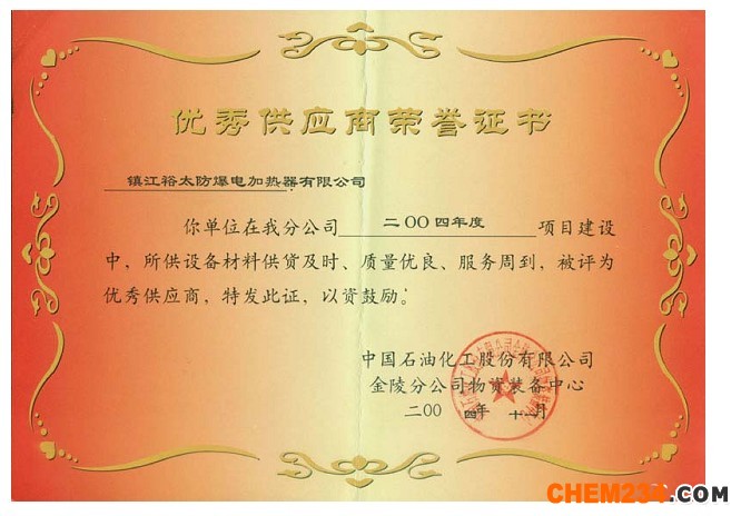 優秀供應商榮譽證書