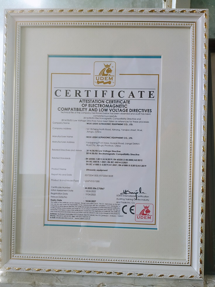 證書介紹 經過一年多堅持不懈的努力,無錫雷士超聲波設備有限公司Ultrasonic equipment榮獲CE認證,標志著公司國際化發展再上新臺階。