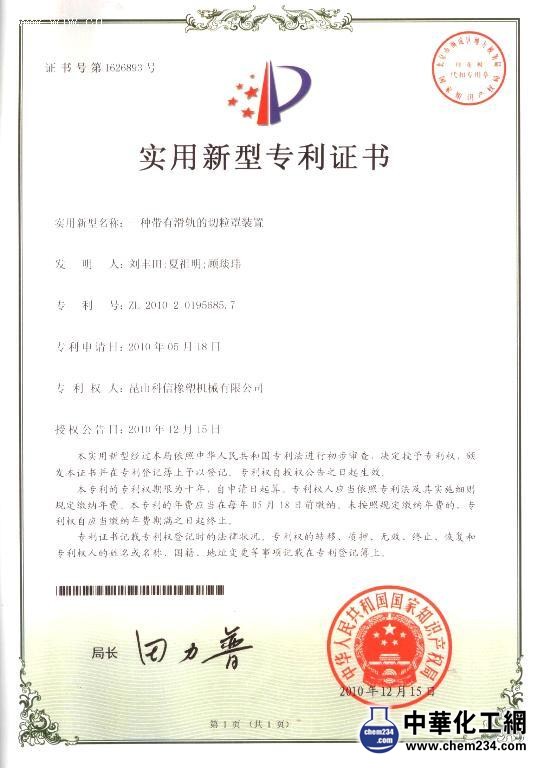 實用新型專利證書