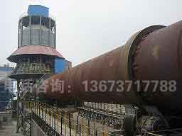 石灰石在預熱器被1150°C窯煙氣加熱到900°C左右,約有30%分解,經液壓推桿推入回轉窯內,石灰石在回轉窯內經燒結分解為CaO和CO2。分解后生成的石灰石進入冷卻器,在冷卻器內被鼓入的冷空氣冷卻到100°C一下排出。經熱交換的600°C熱空氣進入窯和煤氣混合燃燒。廢氣在兌入冷風經引風機進入袋式除塵器,再經排風機進入煙囪。