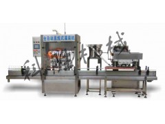 三型鋁箔感應機 + 活塞式灌裝機 + TB-90LR立式貼標機 + XG2007自動旋蓋機 + 送瓶機