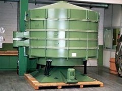按積木式結構原理設計開發,由一剛性曲柄軸驅動,并進行了動態平衡。在可調整傾角的剛性曲柄軸的驅動下,圓形的篩機體可實現三維空間運動,即在水平的圓周運動上疊加一個垂直方向的上下運動。振動的參數隨旋轉速度、曲柄偏心度、徑向傾角和切向傾角的大小而變化。這種設計構造,使得其工作參數的組合可以無窮的多,從而使得被篩分的物料可以以所期望的速度在篩網層上運動,或者在期望的時間內滯留在篩網層上。篩機振幅及物料的加速度隨曲柄偏心度的大小而變化,曲柄軸的切向傾角的大小決定著物料在篩網上作圓周運動的速度;曲柄軸的徑向傾角決定著物料從篩網中央向邊緣運動的速度;切向和徑向傾角的相互作用導致被篩分的物料在篩網上作一種螺旋漸開線運動,物料在篩網上停留的時間,即篩分的精度和度量是由切向和徑向傾角大小的組合比例來決定的。