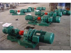 該高粘度泵(高粘度轉(zhuǎn)子泵,瀝青輸送泵,樹脂泵)具有內(nèi)齒的主動齒帶動內(nèi)轉(zhuǎn)子在全封閉的泵體內(nèi)作同方向轉(zhuǎn)動,泵殼和月牙板使吸入口和排出口隔開,轉(zhuǎn)動時,在吸入口形成負壓,液體被吸入,被轉(zhuǎn)子帶到排出口,受壓排出泵體,完成了液體的輸送。
