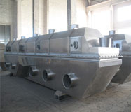 物料自進料口進入機內,在振動作用下,物料沿流化床水平方向拋擲向前連續運動,熱風向上穿過流化床同待處理物料進行熱質后,濕空氣經旋風分離器除塵后由排風口排出,干燥物料由排料口排出。