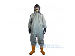 防護性能達到較高防護標準,防護范圍為有毒氣體、酸性溶劑、高溫液體,材料可以防護多達240多種包括最常見的工業用化學品及化學事故中常見的化學品,呼吸器外置式,可與所有品牌呼吸器配合使用,也可以與過濾式防毒面具配合使用;接縫處經過內部和外部雙硫化,密封性極佳 ,機械強度高,高密閉性防水拉鏈;高清晰度大面屏視窗,不扭曲視覺效果;手套和安全靴緊固連于連體服;連體服還包括4個閥門,以保證服裝內4毫巴的低正壓