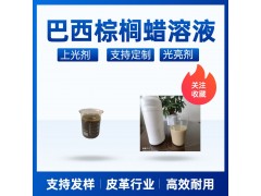 拋光型配方添加劑。具有優異的油感。經典、穩定、配伍性好的巴西棕櫚蠟乳液,可以替代進口同類產品。在皮化、鞋化上具有上光、擦焦、變色、油感、蠟感等功能。在皮革等表面具有越拋越亮的特性,并提供飽滿的蠟感和油感。其流平性和潤飾性也是很明顯的,尤其適用于棕色、黑色真皮。