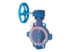 基本類型有對夾式和法蘭式兩種型式,均采用對分兩片式閥體組合,閥座與閥體內襯一體化,屬強制密封全襯里型蝶閥。閥門工作時,只有整體襯氟的襯套、熱覆氟塑料的蝶板與介質接觸,確保可靠的耐腐蝕性能:閥門關閉時,蝶板擠壓襯套,形成無間隙密封。