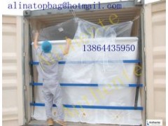 集裝箱散裝內(nèi)襯袋通常被置于20"或40"的集裝箱中,可以大噸位的裝運固體散裝顆粒狀、粉末狀產(chǎn)品。由于是集裝箱化運輸,相比較于傳統(tǒng)編制袋類小包裝和噸袋運輸方式具有單位運量大、裝卸容易、降低勞動力、貨物無二次污染等優(yōu)點。