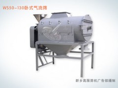 WS系列氣流篩分機擯棄重力勢能作業原理,采用空氣作載體,動能作功的作業原理。通過負壓氣流將物料與空氣混合后,進入篩機風輪中間,通過風輪葉片施加足夠的離心力,向桶型篩網噴射過網,經過蝸殼收集。超徑物料不能過網,由自動排渣口排出,從而達到快速篩分之目的。