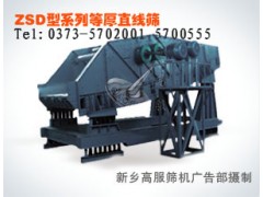 ZSD型系列直線等厚振動(dòng)篩是一種直線振動(dòng)篩。廣泛適用于煤碳、冶金、礦山、電力、建材、輕工和化工等行業(yè)對(duì)各種顆粒狀和小塊狀松散固體物料的干式分級(jí)。
