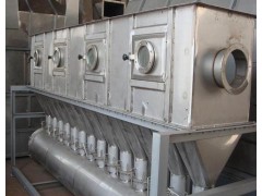 潔凈的熱風經閥板分配進入床體內,從加料器進入的濕物料被熱風形成沸騰狀態。由于熱風與物料接觸,增強了傳熱傳質的過程,因此在較短時間內就可干燥。如用連續型,物料從床體的一頭進入,經過幾十秒至幾分鐘沸騰干燥,自動從床體另一頭流出。本設備一般進行負壓操作。