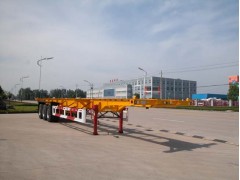 用于運輸45英尺集裝箱或框架式箱罐;牽引銷處車架總高度90mm;側防護裝置,材料:Q235,連接方式:螺栓連接;后下部防護裝置,材料:Q235,連接方式:焊接,斷面尺寸(mm):140×35,離地高度:550 mm; |