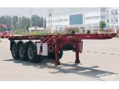 運輸20英尺集裝箱或箱罐;牽引銷處車架總高度為90mm;選裝導向塊時外形高為1680mm;側防護裝置,材料:Q235,連接方式:螺栓連接;后下部防護裝置,材料:Q235,連接方式:焊接,斷面尺寸(mm):140×35,離地高度:550 mm. |