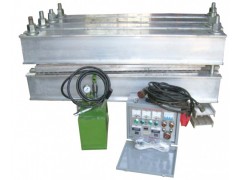 (2)、按圖4所示,先將壓力裝置(水壓板)放在已擺放好的下架機上面;再將下電熱板放在其上。三者對齊后,在下電熱板上面鋪滿塑料薄膜(或撒滿滑石粉);注意:多臺硫化機并列工作時,在下電熱板接縫處墊以0.2x50x接縫長的薄金屬板。