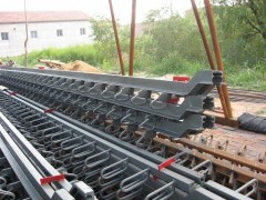 4.放置海棉及錒盞扳:將粱(或板)于臺(tái)背之間的縫隙用海綿填充.并用4—6wrn厚的鋼板(鋼板的寬度根據(jù)縫的寬度來定,一般為15era左右)盞住,防止碎石等顆粒掉^,影響檗的伸張。