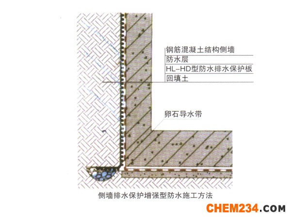 (HDPE)排水防水保護(hù)板式地下室側(cè)墻防水系統(tǒng)最佳保護(hù)材料,具有抗回填土破壞及物件撞擊性能,疏導(dǎo)匯集的環(huán)境水、保護(hù)內(nèi)層防水系統(tǒng)免受土壤沉降以及植物樹根破壞。