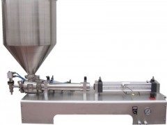 該機針對中等黏度至高黏度的產品灌裝需要和開發研制。整機有儲料斗,電控兩大部分組成,結構簡潔,操作便利;氣動部分均采用德國FESTO和日本SMC的氣動元件;氣缸的活塞和缸體均由聚四氟乙烯和不銹鋼材料制成,符合GMP要求;灌裝量和灌裝速度均可任意調節,精度高;灌裝悶頭采用防滴漏、防拉絲灌裝裝置;本機可根據客戶的需求改裝成為防爆式灌裝系統。