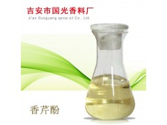 香芹酚又稱2-對傘花酚、異麝香草酚、異百里酚、對異丙基鄰甲酚。天然品存在于百里香油(約70%)、牛至油(約80%)及甘牛至油等中。無色至淡黃色稍具稠粘性的油液。置空氣和光中,色澤變深。呈辛香、涼香、藥草香,具有似百里香酚的氣味。沸點238℃,熔點0.5~1℃,閃點100℃。溶于乙醇、**、丙二醇和堿,不溶于水。混溶于油類。與水蒸氣一起揮發。