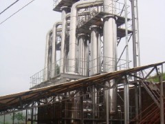 5.設備適用于發泡性物料蒸發濃縮,由于料液在加熱管內成膜狀蒸發,即形成汽液分離,同時在效體底部,料液大部份即被抽走,只有少部份料液與所有二次蒸汽進 入分離器強化分離,料液整過程沒有形成太大沖擊,避免了泡沫的形成。