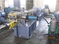 PES造粒機基本結構形式:1.雙螺桿主機 2.水拉條機頭 3.水槽 4.吸干機 5.切粒機