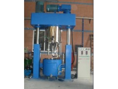 本機器由底座、釜蓋及傳動系統(tǒng)、釜體、液壓升降系統(tǒng)、電氣控制系統(tǒng)組成。底座為焊接結(jié)構(gòu)。釜體為不銹鋼制作,底部有橡膠腳輪及出料口,外壁有定位夾緊扣。 釜蓋及傳動系統(tǒng)包括:釜蓋、三個運行機構(gòu)、密封裝置、減速器、電動機、變頻器。 液壓升降系統(tǒng)包括:柱塞、油缸、油箱、密封裝置、電機、齒輪泵、閥件、管件等組成。 電氣控制系統(tǒng):該系統(tǒng)為全套設(shè)備控制操作。由電控柜和操作按鈕面板組成。各運動部件有嚴謹?shù)幕ユi性,操作方便安全、可靠。 三.強力分散機的參數(shù)