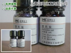 詳細信息 中文名稱:雷氏鹽 英文名稱:Reinecke salt 別 名:四硫氰基二氨絡鉻酸銨,賴納克氏鹽,利英鈉克鹽,利英納克鹽,硫氰酸鉻銨,二氨基四硫代氰酸鉻銨,二氨合四氰硫基(硫代氰酸基)鉻酸銨(III)一水化物。 CAS NO:13573-16-5 分 子 式:NH4[Cr(NH3)2(SCN)4]?H2O 分 子 量:354.45 規 格:優等品/分析純AR 包 裝:多種包裝 產品性狀: 本品選用優等原料制成,屬于優等品質。 本品為深紅色結晶或紅色結晶性粉末。 溶于熱水和乙醇,微溶于冷水。在水溶液中分解游離氫氰酸而成藍色。 室溫時分解約在二周內發生,溫度高于65℃時速度加快。在沸乙醇中有相似分解發生。 熔點268~272℃(分解)。 主要用途: 1)雷氏鹽用作分析試劑對氯化膽堿靈的測定; 2)雷氏鹽用作Cu+, Hg2+ 和 Cd2+的顯色劑和沉淀劑,環保測定試劑; 3)雷氏鹽用作比色測定膽堿及其他有機堿; 4)雷氏鹽用作伯胺、仲胺、脯氨酸、羥基脯氨酸和某些氨基酸的沉淀劑; 5)雷氏鹽用于新材料開發。 價 格:以當天報價為準(歡迎來電查詢) |