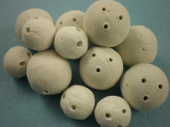 MH微孔瓷球又名過濾瓷球,是在惰性瓷球的內部上增加了20-30%具有吸附作用的結構微孔。因而除具有和惰性瓷球相同的支撐覆蓋催化劑和分散汽液的作用外,還同時能吸附過濾油品中的雜質.油品中雜質的形態有顆粒狀、膠質狀、瀝清質及重金屬等,這些雜質在經過原料過濾器后雖然可濾掉一部分,但仍有相當部分(如小于25üM的顆粒雜質和鐵離子)還是無法濾掉。如在反應器的頂部裝填MH多孔瓷球則可將原料中未過濾掉的雜質吸咐在其孔內,從而可保護催化劑,并延長裝置的運行周期。