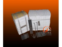 注:各種陶瓷纖維模塊,是用對應材質的陶瓷纖維針刺毯,按纖維組件結構、尺寸,在專用機械上加工而成。在加工過程中,均保持一定比例的壓縮量,以保證陶瓷纖維模塊壁襯砌筑完畢后,陶瓷纖維模塊在不同方向的膨脹,使陶瓷纖維模塊之間相互擠成一個無縫隙的整體,陶瓷纖維模塊均能通過各種形式的錨固件直接固定于工業窯爐爐殼鋼板錨固釘上。