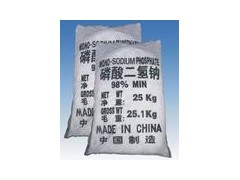 詳細信息 磷酸二氫鈉性狀:無色柱狀結晶。無臭。易溶于水,略有吸濕性。用途:緩沖劑;品質改良劑;乳化劑;營養增補劑;抗氧化增效劑;;凝膠劑;類燙毛劑。 磷酸二氫鈉 在一定的ph值下,由碳酸鈉與磷酸反應或由磷酸氫二鈉與一定比例的磷酸反應制得在濕空氣中易結塊。100攝氏度時脫水成無水物,水溶液呈酸性反應(PH=4.5)。磷酸二氫鈉用途:用于鍋爐水處理,電鍍、制革、焙粉、燃料助劑、洗滌劑、云母徹合、酸性緩劑等,也是制取六偏磷酸鈉和縮聚酸鹽的原料。 含量:99%。 磷酸二氫鈉[英文名稱]:sodium hydrogen phsphate [分 子 量]:Na 2 HPO 4 12H 2 O [分 子 量]:358.14 磷酸二氫鈉指標名稱 指標 [產品質量]:符合GB6008-85標準 磷酸氫二鈉(以Na 2 HPO 4 12H 2 O計)含量,% ≥ 97.0 硫酸鹽(以SO 4 計)含量,% ≤ 0.7 氯化物(以CI計)含量,% ≤ 0.05 水不溶物% ≤ 0.05 砷(以As計)% ≤ 0.005 氟化物(F),% ≤ 0.05 PH值 9.0 ± 0.2 |