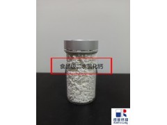 食品級二水氯化鈣為白色立方結晶或粉末,有強吸濕性,易溶于水和乙醇。其水溶液呈中性或微堿性,具有腐蝕性。溶于醇,不溶于醚。加熱至260攝氏度時脫水變成無水物,其他化學性質與無水氯化鈣相似。
