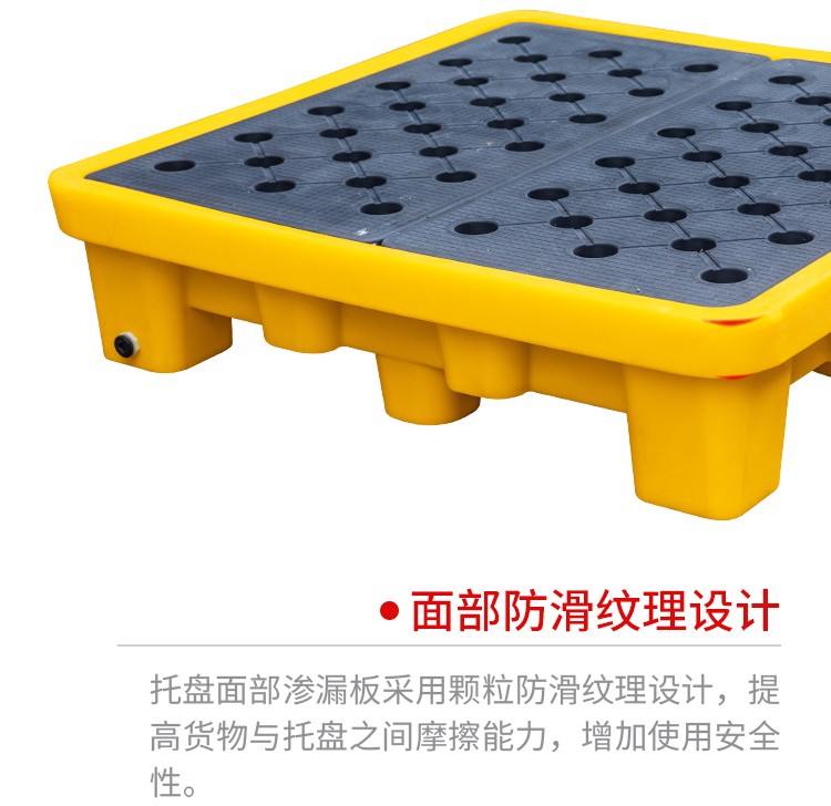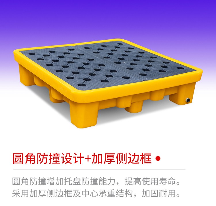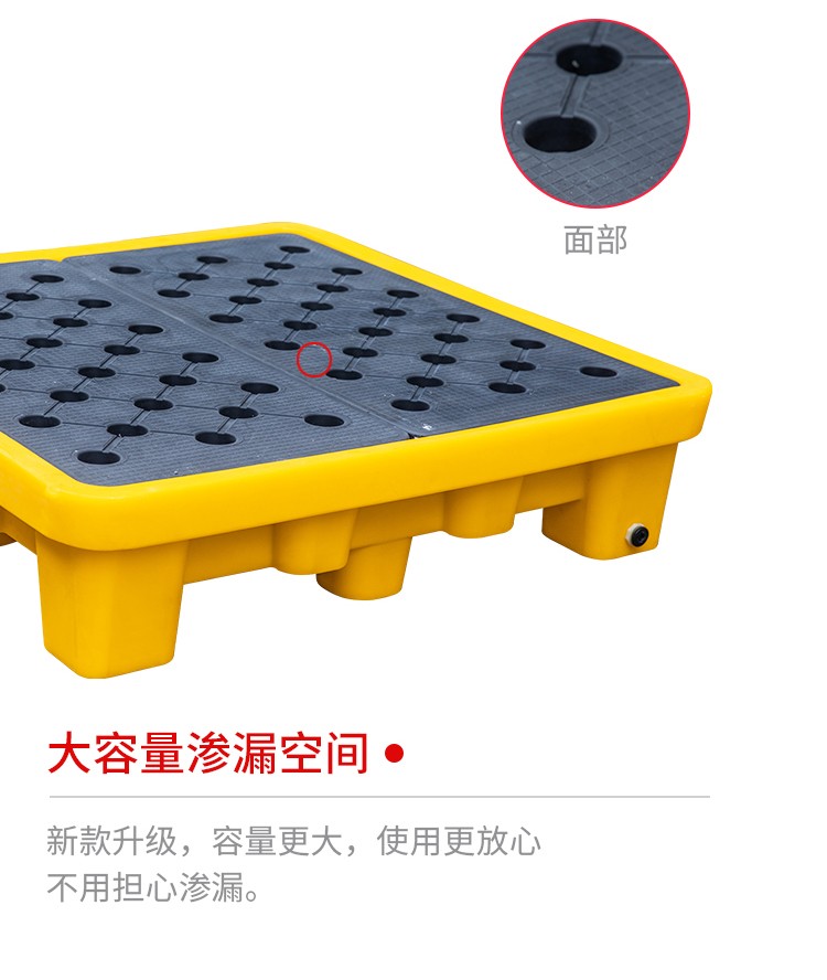 賽普塑業生產的6767雙桶防滲漏平臺,采用新款加厚隔板,產品耐酸堿耐腐蝕,載重量大,采用滾塑技術生產,表面光滑無毛刺,內部120升大儲漏空間,當發生泄漏時,泄露液體都會沿隔板注入托盤內部,不污染環境。