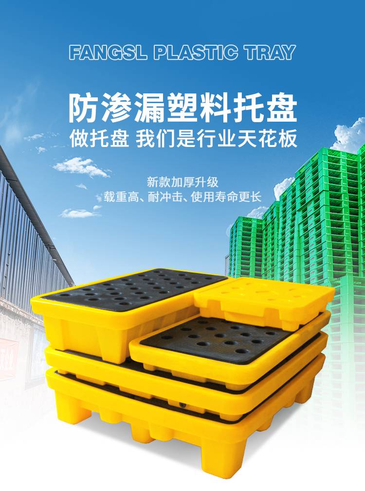 防滲漏托盤,也叫盛漏托盤、防溢漏托盤、盛漏卡板、防溢出托盤、油桶托盤、防泄漏托盤、盛漏油桶托盤、接油盤,是為了防止和控制現代工廠、倉儲、物流、運輸業大量使用的油桶和化學品桶以及其他油品和化學品容器泄漏而設計開發出來的聚乙烯材質容器。主要用于化學品的分裝和存儲,可以防止產生環境污染,保護人身安全。