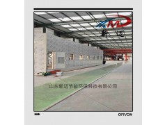 一種是側進風(或房頂部)、側排風。這種排風設計管道在房體之外,長度與整體移動房體的行程相同。外側排風管道上設若干個電動風閥,而在房體側面設置若干個噴漆或打磨工位,并在此處通過伸縮汽缸實現與排風管道的自動對接。漆霧收集采用玻纖地棉過濾,過濾棉框嵌入噴漆房墻體的排風一側,而另一側墻體或者房頂設置進風過濾系統。