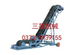 詳細信息 DJ-Ⅱ型大傾角皮帶輸送機產品概述: DJ-Ⅱ型大傾角皮帶輸送機其結構是在平形橡膠運輸帶兩側粘上可自由伸縮的橡膠波形立式“裙邊”,在裙邊之間又粘有一定強度和彈性的橫隔板組成匣形斗,使物料在斗中進行連續輸送。擋邊帶式輸送機可廣泛用于煤炭、糧食、建材、化工、水電和冶金等部門,在環境溫度為-19℃~+40℃范圍內,輸送堆積比重為0.5-2.5t/m3的各種散狀物料。對于輸送有特殊要求的物料,如高溫、具有酸、堿性、油類物質或有機溶劑等成分的物料,需采用特殊的擋邊輸送帶。 DJ-Ⅱ型大傾角輸送機主要用途: 1.擋邊帶式輸送機為一般用途的散狀物料連續輸送設備,采用的是具有波狀擋邊和橫隔板的輸送帶。因此,特別適用于大傾角輸送。 2.該機可用于煤炭、化工、建材、冶金、電力、輕工、糧食、港口、船舶等行業,在工作環境濕度為-15℃--+40℃的范圍內輸送堆積比重為0.5-2.5t/m3的各種散狀物料。 3.對于輸送有特殊要求的物料,如:高溫、具有酸、堿、油類物質或有機溶劑等成份的物料,需采用特殊的輸送帶。 4.擋邊帶式輸送機輸送傾角0°-90°范圍內。 DJ-Ⅱ型大傾角皮帶輸送機布置形式: 為獲得較好的受料和卸料條件,本機采用“Z”形布置形式。即設有上水平段、下水平段和傾斜段,并在下水平段受料,在上水平段卸料。上水平段與傾斜段之間采用凸弧形段機架連接,下水平段與傾斜段之間采用凹弧段機架相連以實現輸送帶的圓滑過渡。 1.上水平段:為了適應不同的卸料高度的要求,頭架分為低頭架(頭架高度H0=1000mm),中式頭架(頭架高度H0=1100~1500mm)和高式頭架(頭架高度H0=1600~2000mm)。并與之相應,在上水平段分別配用低式凸弧段機架和低式中機架支腿(配用頭架高度H0=1000mm),中式凸弧段機架和中式中間架支腿(配用頭架高度H0=1100~1500mm), 高式凸弧段機架和高式中間架支腿(配用頭架高度H0=1600~2000mm)。 2.傾斜段:無論上水平段采用的是低式、中式、或是高式中間架支腿,傾斜段均采用低式中間架支腿。當輸送機傾角β≧45°時,推薦采用Ⅱ型低式中間架支腿。 3.下水平段:下水平段采用低式中間架支腿。 DJ-Ⅱ型大傾角皮帶輸送機主要特點: 1.節省占地面積,節省投資. 2.輸送量大,通用性強. 3.輸送機傾角:0°-90° 4.維修方便,托輥等部件同普通帶式輸送機. 5.應用范圍廣:冶金、礦山、碼頭、環保、糧食、化工、建材等等. DJ-Ⅱ型大傾角皮帶機部件的名稱及用途: 1.波狀擋邊輸送帶: 在輸送機中起曳引和承載作用。波狀擋邊、橫隔板和基帶形成了輸送物料的"閘"形容器,從而實現大傾角輸送。 2.驅動裝置 是輸送機中的動力部分。系由Y系列電動機,ZJ型軸裝式減速器,楔塊式逆止器組成。 3.傳動滾筒: 是動力傳遞的主要部件,輸送帶借其與傳動滾筒之間的摩擦力而運行。本系列傳動滾筒有膠面和光面之分,膠面滾筒是為了增加滾筒和輸送帶之間的附著力。 4.改向滾筒: 用于改變輸送帶的運行方向。改向滾筒用于輸送帶下表面(非承載面)。 5.壓帶輪: 用于改變輸送帶的運行方向,壓帶輪用于輸送帶上表面(承載面)。 6.托輥: 托輥用于支承輸送帶和帶上的物料、使其穩定運行。本系列有上平行托輥、下平型托輥兩種型式。 7.托帶輥: 托帶輥用于在凸弧段機架上支承輸送帶下分支,其支承于擋邊輸送帶兩側的空邊上。若干組托帶輥形成一個圓弧段用于使輸送帶改向。托帶輥采用懸臂支承。 8.立輥: 立輥用于限制輸送帶跑偏,并安裝在上、下過度段機架上。每個過濾段機架上設有4個,上、下分各兩個。 9.拍打輪清料裝置: 用于拍打輸送帶背面,震落粘在輸送帶上的物料。 10.拉緊裝置; 它的作用有:1.使輸送帶具有足夠的張力,保證輸送帶和傳動滾筒間不打滑。2.限制輸送帶在各支承間的垂度,使輸送機正常運轉。本系列采用螺旋拉緊裝置。 11.機架、頭部漏斗、頭部護罩、導料槽、中間架、中間架支腿等: 在輸送機中分別起支承、防塵和導料作用。本系列中間架支腿有低式、中式和高式三種。下水平段和傾斜只配用低式中間架支腿,而上下水平段根據不同的頭架(低式、中式和高式頭架)分別配用不同的中間架支腿(低式、中式和高式中間架支腿)。 |