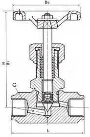四、J13W高壓內螺紋針型閥主要外形及連接尺寸: