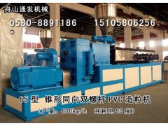 TF-500型號“超大產(chǎn)量PVC雙螺桿造粒機(jī)”(螺桿直徑65/130mm;長徑比48:1;螺桿有效長度3150mm;主電機(jī)功率55KW;造粒產(chǎn)量800kg/h;造粒 噸耗電80度),比市場上65型號的“平行同向雙螺桿造粒機(jī)”或“錐形雙螺桿擠出機(jī)”省電50%以上,產(chǎn)量提高2~3倍。同時還可以添加高比例碳酸鈣和回收料,大大降低了生產(chǎn)成本、人工成本和生產(chǎn)場地面積,具有非常高的性價比!主機(jī)耗電每噸可以節(jié)省60度電以上,每天按照10噸計算,1天就可以節(jié)省600度以上的電耗,1年(360天)省電21.6萬度,即2年左右就可以通過電費(fèi)的節(jié)省收回機(jī)器投入。
