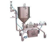 該機為半自動活塞式灌裝機,可灌裝顆粒漿狀流體物料。