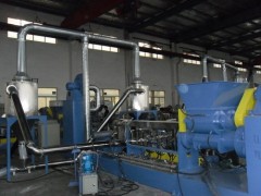 密煉機的團狀料經(jīng)提升機,雙腕喂料機,擠出機,切粒,冷卻,篩分,終端料倉全部自動化,流水作業(yè)。物料密煉后能強制進入單螺桿,螺桿全稱分散,無過分摩擦熱。分散效果優(yōu)異,主機電流小,節(jié)能環(huán)保。此機臺用于PVC,低煙無鹵電纜料,內(nèi)外屏蔽電纜料,氯化聚乙烯,功能母粒,色母粒,熱收縮料,PP+炭黑低煙無鹵系列及各種橡膠母粒的生產(chǎn),包括主機,雙腕強制入料,模面熱切等系統(tǒng)將密煉機撹好的原料經(jīng)雙腕擠入造粒機內(nèi),后經(jīng)單螺桿擠出后切成粒子,此機組操作非常簡單。