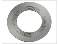 齒形墊片是一種金屬軟墊片,密封效果優于金屬平墊,一般用精密的車床在金屬不銹鋼平墊片的二面加工成同心的90度夾角波形的鋸齒狀溝槽,根據不同的介質,可選擇柔性石墨、PTFE、無石棉板或其他一些軟金屬,粘貼在墊片的二面,利用軟性覆蓋層的密封性以及金屬的強度、彈性好的優點,還兼有迷宮密封作用,故達到同樣的密封效果,墊片壓緊力較小。齒形組合墊片也可不帶覆蓋密封層直接使用,可能達到良好的密封效果,但在高壓場合中容易對法蘭的表面造成損失。齒形組合墊片主要應用于中、高壓力和高溫的壓力容器和管道法蘭的密封。