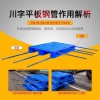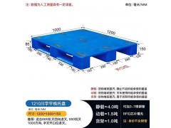 1210平板川字塑料托盤,長是1.2米,寬是1米,高為0.15米,底部為川字狀,表面為平面狀。采用HDPE為原料,注塑一次成型,結構穩定,易于清洗。可內置7根鋼管,可上貨架。