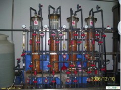 離子交換水設(shè)備(陰陽混床)由陰離子交換樹脂和陽離子交換樹脂按比例混合而成。陽離子交換樹脂用其H+交換去除水中的陽離子,陰離子交換樹脂用其OH-交換去除水中的陰離子,在混床樹脂中被交換出來的H+和OH-結(jié)合生成H2O,因此混床離子交換純化柱可用來深度去除RO純水中尚存的微量離子。小型實(shí)驗(yàn)室超純水器中的混床離子交換純化柱通常為一次性使用。美源混床離子交換純化柱采用原裝進(jìn)口核級混床樹脂,其產(chǎn)水電阻率可達(dá)18.2MΩ.cm。