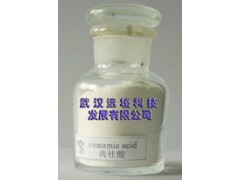 是重要的有機(jī)合成工業(yè)中間體之一,廣泛用于醫(yī)藥、香料、塑料和感光樹脂等化工產(chǎn)品中。 肉桂酸還可作為鍍鋅板的綏蝕劑,聚氯乙烯的熱穩(wěn)定劑,多胺基甲酸脂的交聯(lián)劑和乙內(nèi)酰的阻燃劑,以及化學(xué)分析試劑等。具有很好的保香作用,通常作為配香原料,也被用作香料中的定香劑,在食品、化妝品 、食用香精等領(lǐng)域都有廣泛的應(yīng)用。