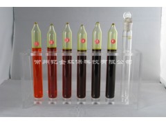 應(yīng)用舉例: 某鍍鉻液測(cè)得的鉻濃度為222.5g/l,查下表可知需取鍍鉻液8.9ml,比色后發(fā)現(xiàn)其顏色介于2號(hào)和3號(hào)之間,則這時(shí)2號(hào)管的三價(jià)鉻濃度為2.225g/L,3號(hào)管4.450g/L,則該鍍鉻的三價(jià)鉻濃度值就為2.225與4.450之間的某一個(gè)值,據(jù)此可判斷確定三價(jià)鉻Cr3+的濃度。