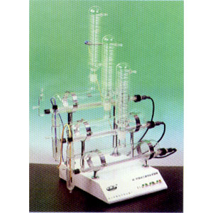 SZ-93自動雙重純水蒸餾器(石英管加熱式) SZ-97自動三重純水蒸餾器特點:本儀器的主要材料全部采用優質玻璃制成蒸餾的水不與任何金屬相接觸,經過三次蒸餾獲得的純水度高,加熱器采用石英玻璃制成,能起到節能、潔凈、長壽、輻射率高等優點。