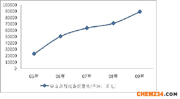 本文收集三家企業從2005-2009年的銷售數據,以三家企業銷售金額的匯總數據作為統計樣本,得到最近5年,磁力應用設備行業銷售變動如下圖: