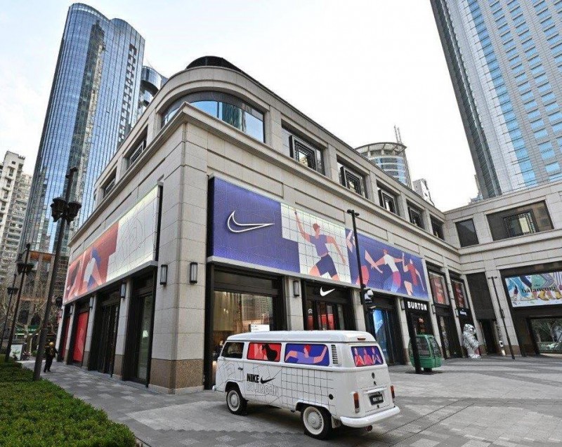 上海的Nike Live店選址鬧中取靜的興業太古匯,幾乎獨享商場南花園的開闊廣場。這家店的外部形象設計是在既不改變建筑整體框架,又能展示自身特色的方案中實現的:在外立面基礎上增加整幅網狀畫面,以取代原本分割成小型模塊的海報空間。Nike的大幅鏤空Logo與標志性插畫連成一體,提升了整個環境的藝術與運動氛圍,呼應了Nike Live打造“家門口的運動社交場”的想法。