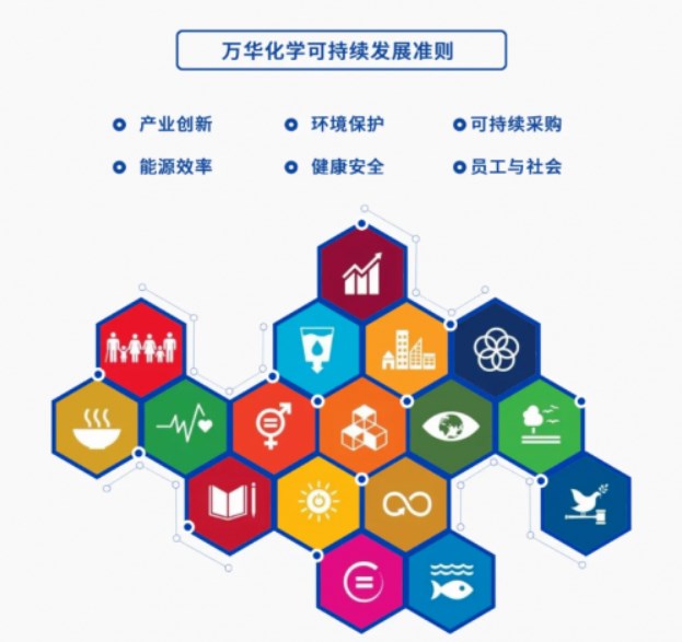 以實(shí)現(xiàn)聯(lián)合國可持續(xù)發(fā)展目標(biāo)為努力方向,以產(chǎn)業(yè)創(chuàng)新、環(huán)境保護(hù)、能源效率、健康與安全、可持續(xù)采購、員工與社會為主線,一幅完整的可持續(xù)發(fā)展“地圖”已然形成。未來,萬華化學(xué)將繼續(xù)以可持續(xù)發(fā)展理念定位企業(yè)自身,攜手上下游企業(yè)同德一心、守正創(chuàng)新,為人類社會發(fā)展貢獻(xiàn)萬華力量!
