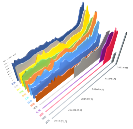 分區域來看,2022年2月,江蘇、河南、青海兩堿工業鹽出廠價格較2022年1月上漲;安徽、江西、重慶、新疆、山東、湖南、湖北兩堿工業鹽出廠價格較2022年1月下跌;河北、陜西兩堿工業鹽出廠價格較2022年1月持平。